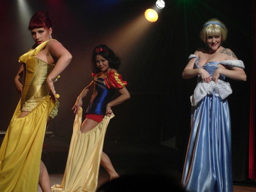 While I was at home watching the Oscars on Sunday the absolutely astounding burlesque troupe The Harlettes were performing in their annual Burlesque Oscars show! These beauties are certainly not lacking for talent and by all accounts had a brilliantly successful show. I was lucky enough to get to make a few skirts to accompany their Disney Princess outfits for one of their acts. Take a look at Maria Juana as Cineralla, Chow Mein as Snow White and Bunny Angora as Belle…
