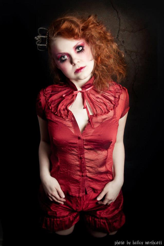 Back when I was still in fashion design school I created these pieces for a final project. They walked the runway in the end of year fashion show and have also been photographed for Auxiliary Magazine. But my favourite use of this Victorian style, shear blouse and red, silk bloomer shorts was in this photoshoot with model Elizabeth and photographer Bailey Northcott!