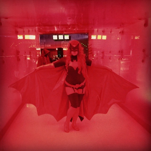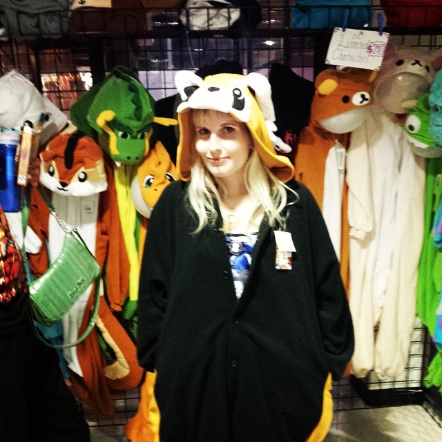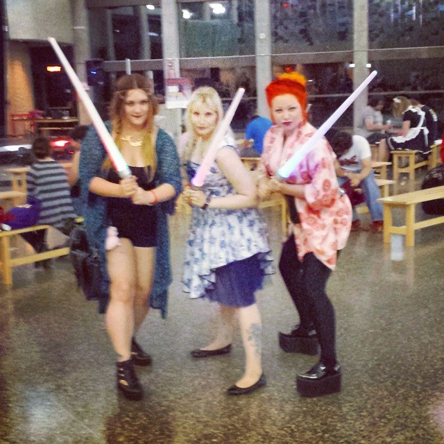 Myself and the amazing Leelando Calrissian who was crossplaying as Catwoman!Pizza Underground played on Friday night. They play Velvet Underground covers but change the words to be about pizza. Oh and Macaulay Culkin is a band member.They gave out free pizza!Then I bought an Alpaca and I named him Al.Bre Poisonne blew everyone away with her amazing Aerial Hoop performance!Scarlet Black did a fire routine as Sailor Mars!After obtaining our free lightsabers, we proceeded to the lightsaber battle outside!So many lightsabers!Brittany tried on a Red Panda Kigurumi!And we saw Macaulay Culkin buy a Gloomy Bear Kigurumi!To end Friday night the Boylesque boys did a little stripping for us. El Toro has a mighty fine behind!On Saturday I returned to hang out with these lovely people.Meryle Trouble, Sevvy Skellington, Leelando Calrissian and Charlie Quinn did an amazing panel about Crossplay and gender swap.Leelando and I make a cute couple! 😉On Saturday night I became my alter-ego Batwoman for the Peepshow TO show!I had to get a photo in the red tunnel!Harley and Batwoman post-showOn Sunday we were a bit more casual with our outfits.We found Zilly Lily!Betty Quirk and Sevvy Skellington did an awesome panel on the ABCs of Cosplay Striptease!Finally I concluded the weekend with a gang of Alpacas! So Kawaiii!