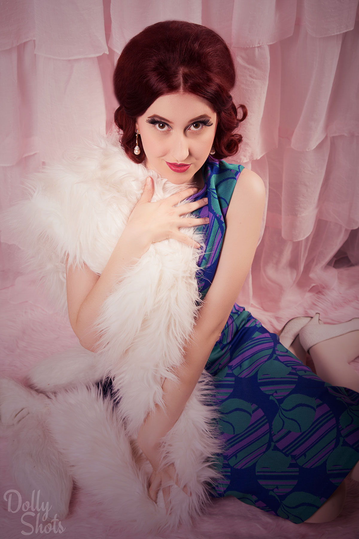 My doll of the week is none other than the delightful Dottie Champagne! This little darling is a newbie Burlesquer with a seriously glamourous vintage appeal. Decked out in a family heirloom and a little bit of faux-fur, Dottie is ready for glass of champagne!
