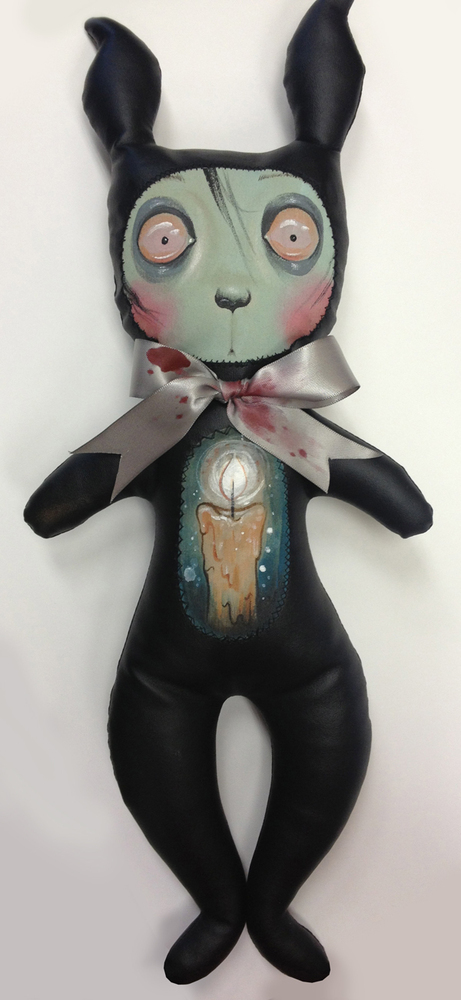 One of my absolute favourite artists in Toronto is the one and only Suspiria. This talented chick has a style all her own. Drawing inspiration from classic horror, the female figure and her own twisted imagination, Suspiria’s work walks the line between girly and gory. She creates dark fantasies through many mediums including paintings, tattoos and recently dolls. Suspiria’s latest creation is a series of Terror Tot dolls with painted faces and bellies stitched onto plush, handmade bodies. You may also recall the wonderful mermaid tattoo I got from Suspiria earlier this year. I am constantly stunned by the outstanding tattoos I see this talented lady creating. She is skilled at both very realistic, almost photo-like tattoos (see the wicked witch below) as well as her own unique style of cartoony, girly pinups and animals (check out the franken-babe with bat buddy below).