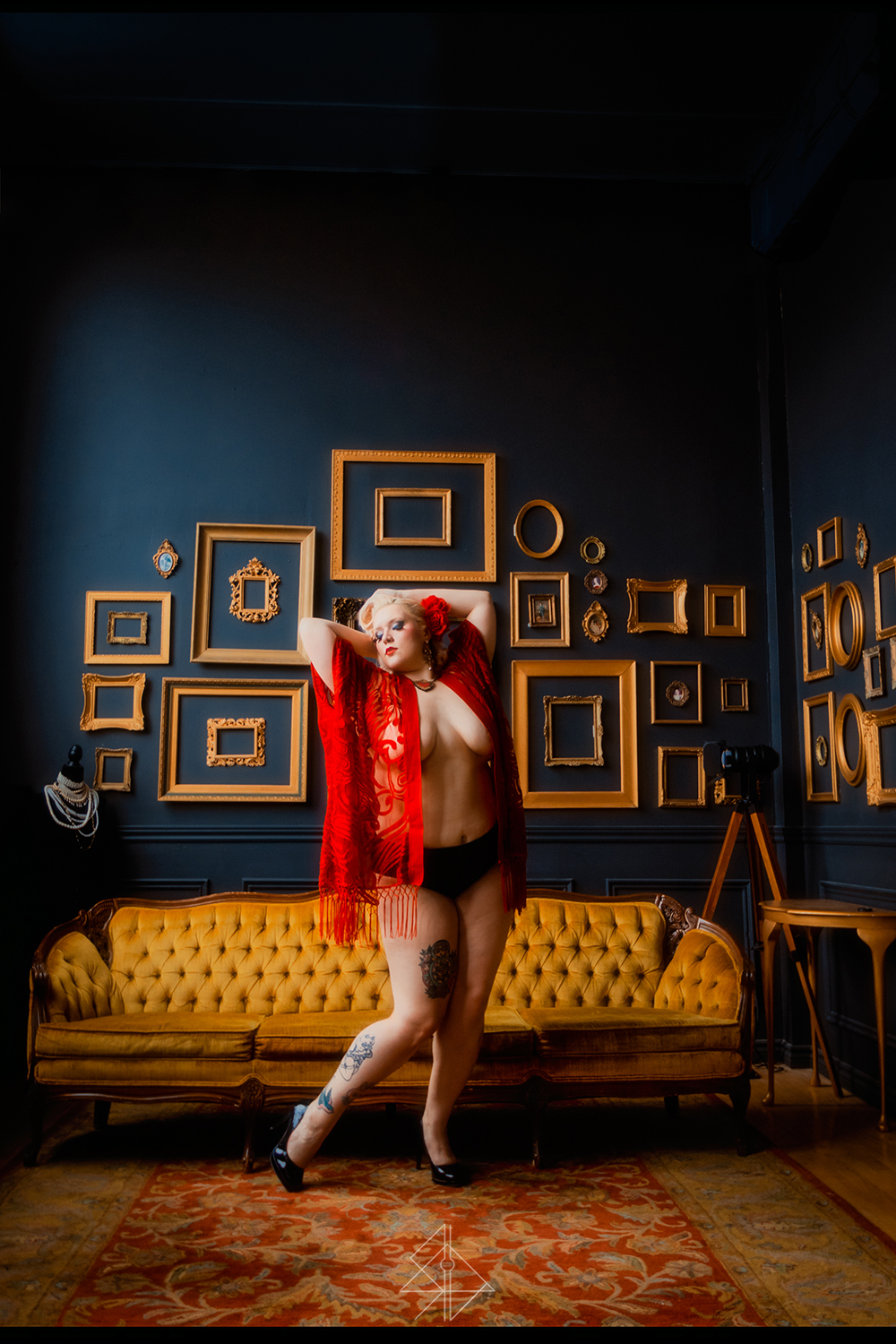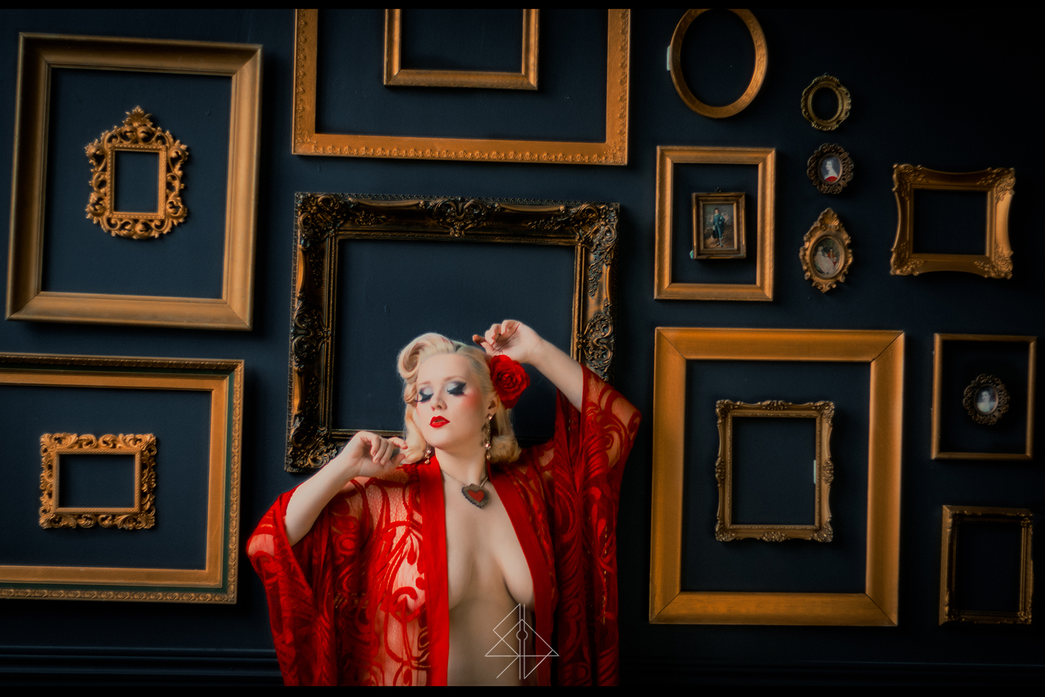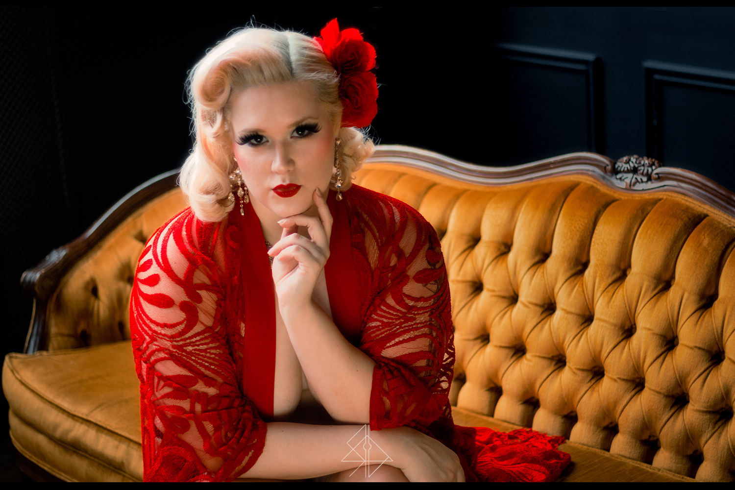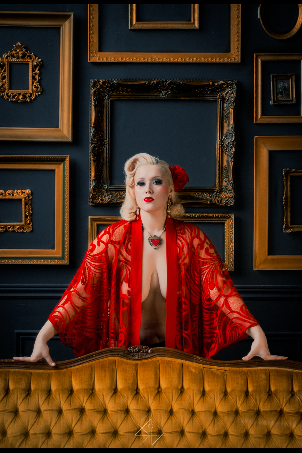 The gorgeous Charlie Quinn is back, back, back again with another fabulous burlesque look! Stunning in red and gold, the movement of this outfit was so inspiring and we had a wonderful time playing around with this look!