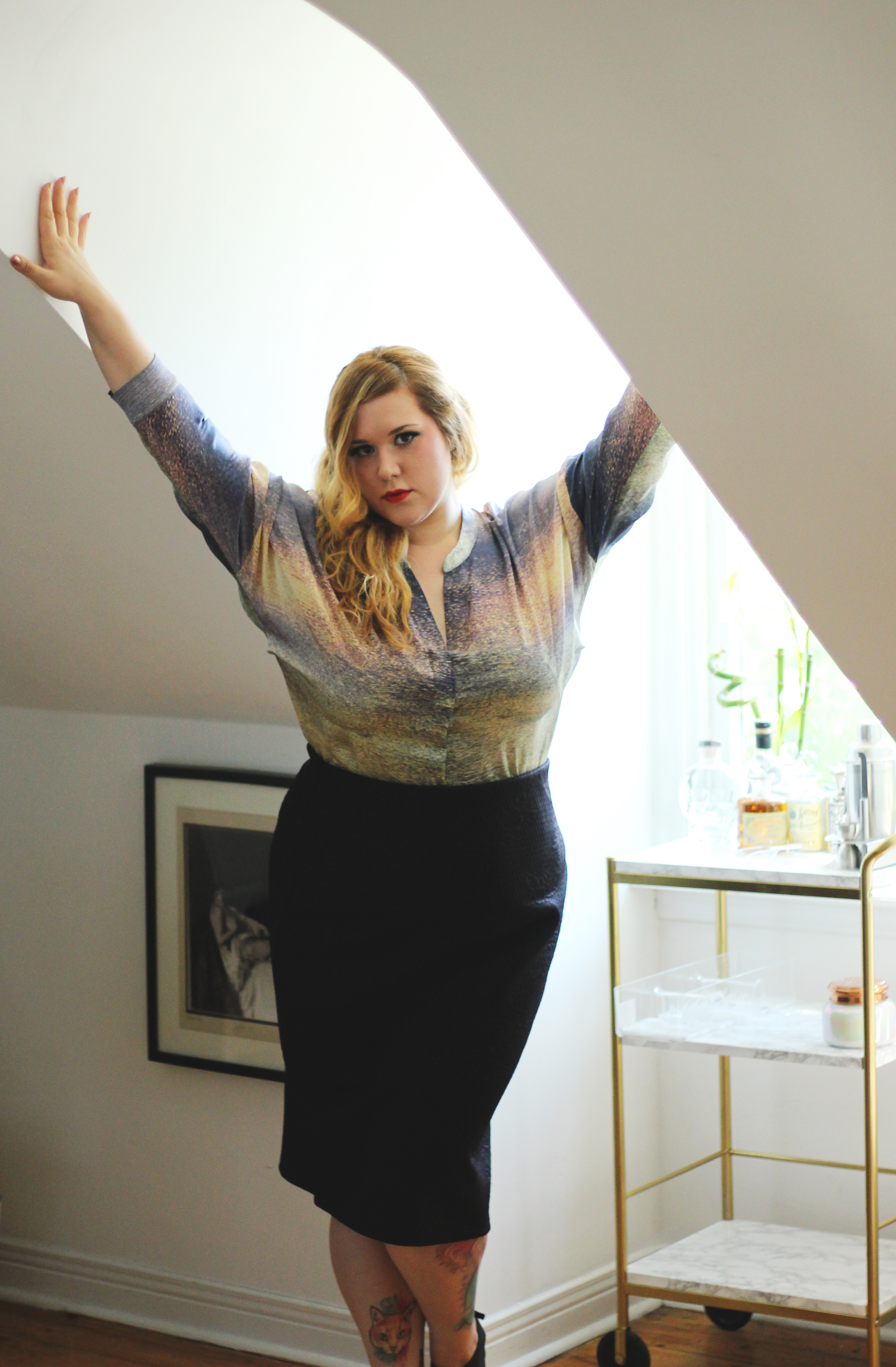 It’s summer in the city and boy is it hot! Luckily I’ve got my trusty fan and a fabulous collection of clothing from Primaala to keep me looking and feeling cool. Primaala caters to a high-end, modern, plus size fashionista clientele. Their designs are sleek and sophisticated with clean lines and rich fabrics. I had the pleasure of shooting this amazing selection of outfits with the help of the Fashion Canadiana herself, Vanessa Petey. Vanessa is a fashion blogger with a focus on Canadian made clothing who has been exploring all facets of the fashion industry including a focus on Plus Size Fashion. Vanessa introduced me to two amazing women, Rachel Holt, the woman behind this fantastic plus size store/clothing line and Yuli Scheidt, curvy goddess and photographer extraordinaire. I had a lovely time working with these incredible women and am so happy to share the final results!