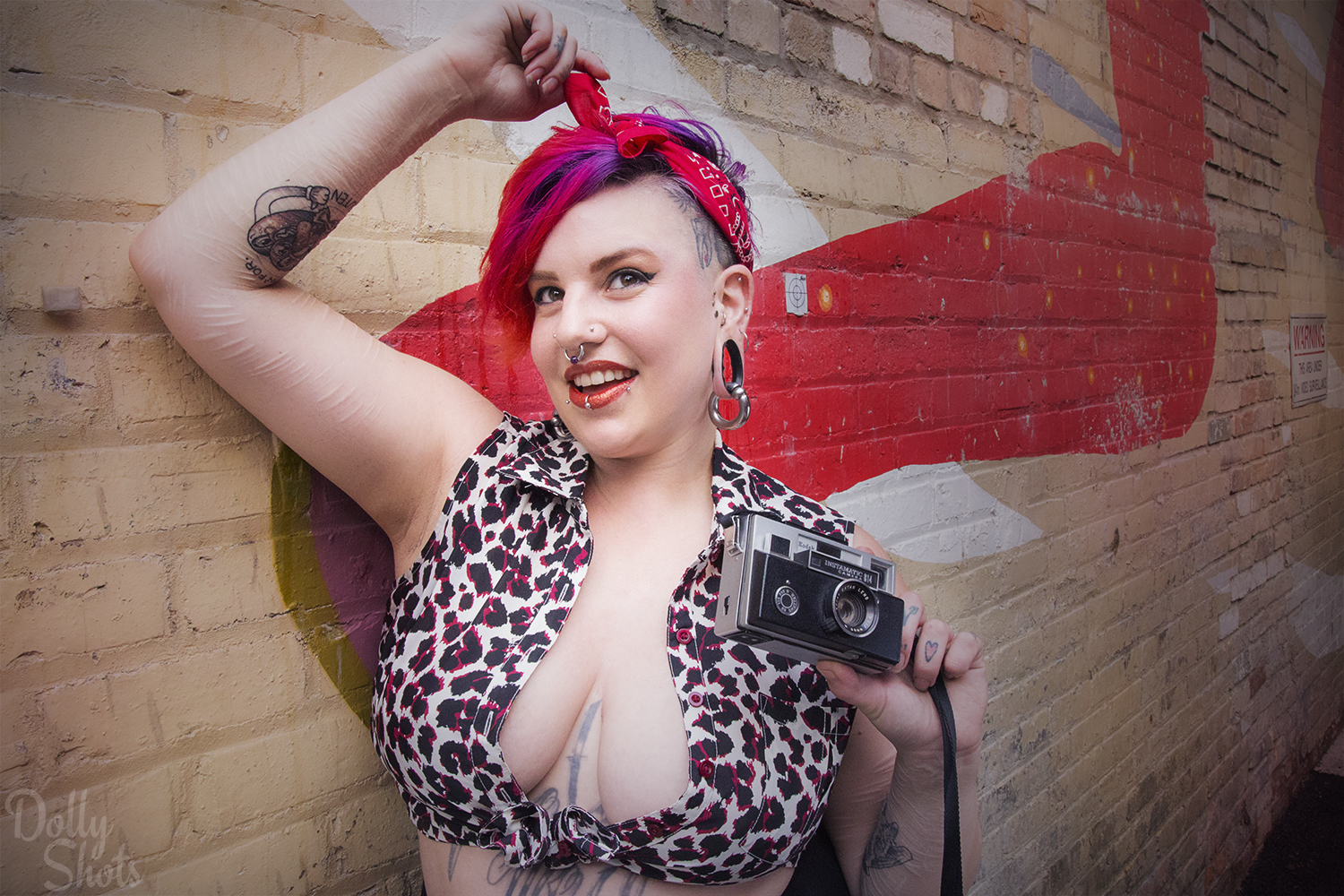 The enchanting Aviva the Mirage appeared at the Dolly Shots studio this week to shoot some sultry, pinup photos! This glamourous, rock n roll burlesquer is a member of Toronto’s Skin Tight Outta Sight! You can catch Aviva on Wednesday evenings at the Bovine for Pussy Whipped Wednesdays!