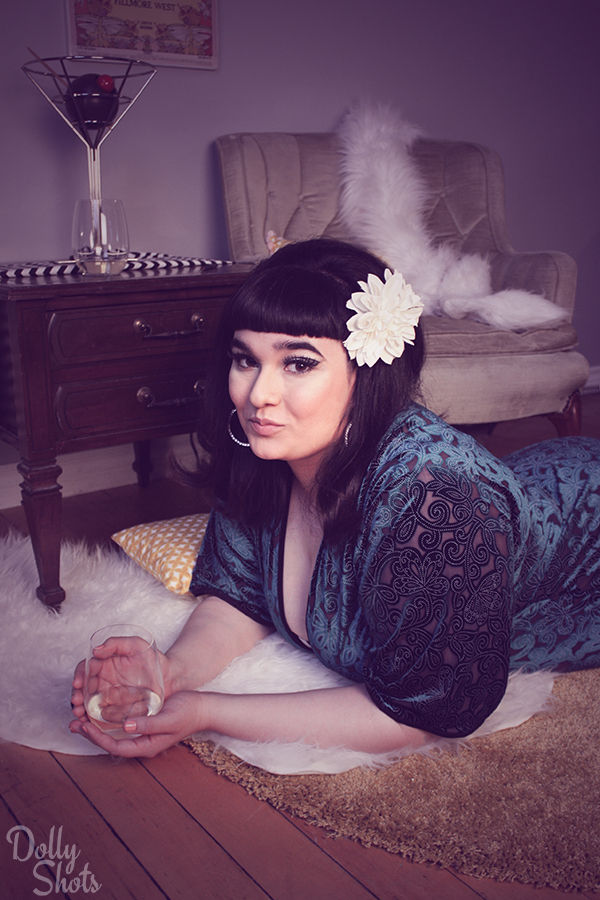 My doll of the week is none other than the delightful Dottie Champagne! This little darling is a newbie Burlesquer with a seriously glamourous vintage appeal. Decked out in a family heirloom and a little bit of faux-fur, Dottie is ready for glass of champagne!