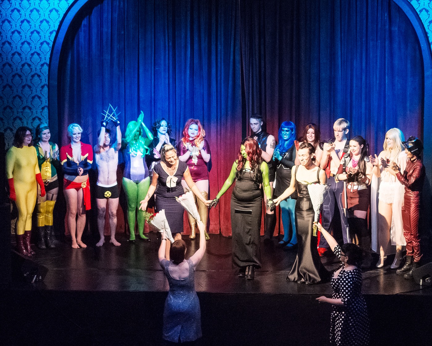 Curtain Call by Lick My Lens CapLeelando Calrissian as NamorDelicia Pastiche as Beast, Betty Quirk as GamoraDante Him as Wolverine, Dolly Monroe as Emma FrostBetty Quirk as GamoraDr. Orifice as Mr. FantasticLoretta Jean as StarlordAlex as Stan Lee, Velvet Valhalla as Lady PunisherLoretta Jean as Starlord, Betty Quirk as GamoraDolly Monroe as Emma FrostMiss Elle Towe as Lady SifSky Blew as Captain AmericaVeronica Vile as Scarlett WitchDelicia Pastiche as BeastDr. Orifice as Mr. FantasticSevvy Skellington as GrootScarlett LaFlamme as Black WidowLeelando Calrissian as NamorHenrietta VIII as She-HulkDante Him as WolverineLeelando Calrissian, Sevvy Skellington and Betty Quirk doing their goodbye speechCharlie Quinn as Captain MarvelZilly Lilly as Dark Pheonix